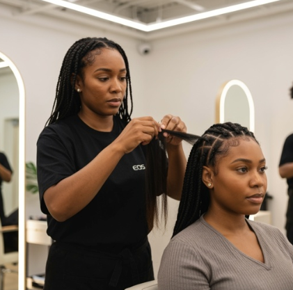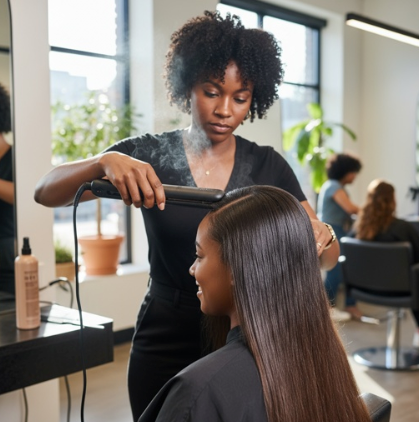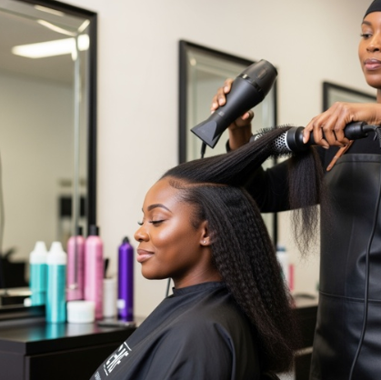 We promote healthy hair serving all hair types and specialize in ethnic hair styling, creating stunning looks and silky, soft tresses. Whether you come in for our signature silk press which can last a full 2-3 weeks with proper maintenance, elegant blow out or just a haircut, you leave invigorated and ready to take on the world with a look all your own. To learn more about our services, click on the button below